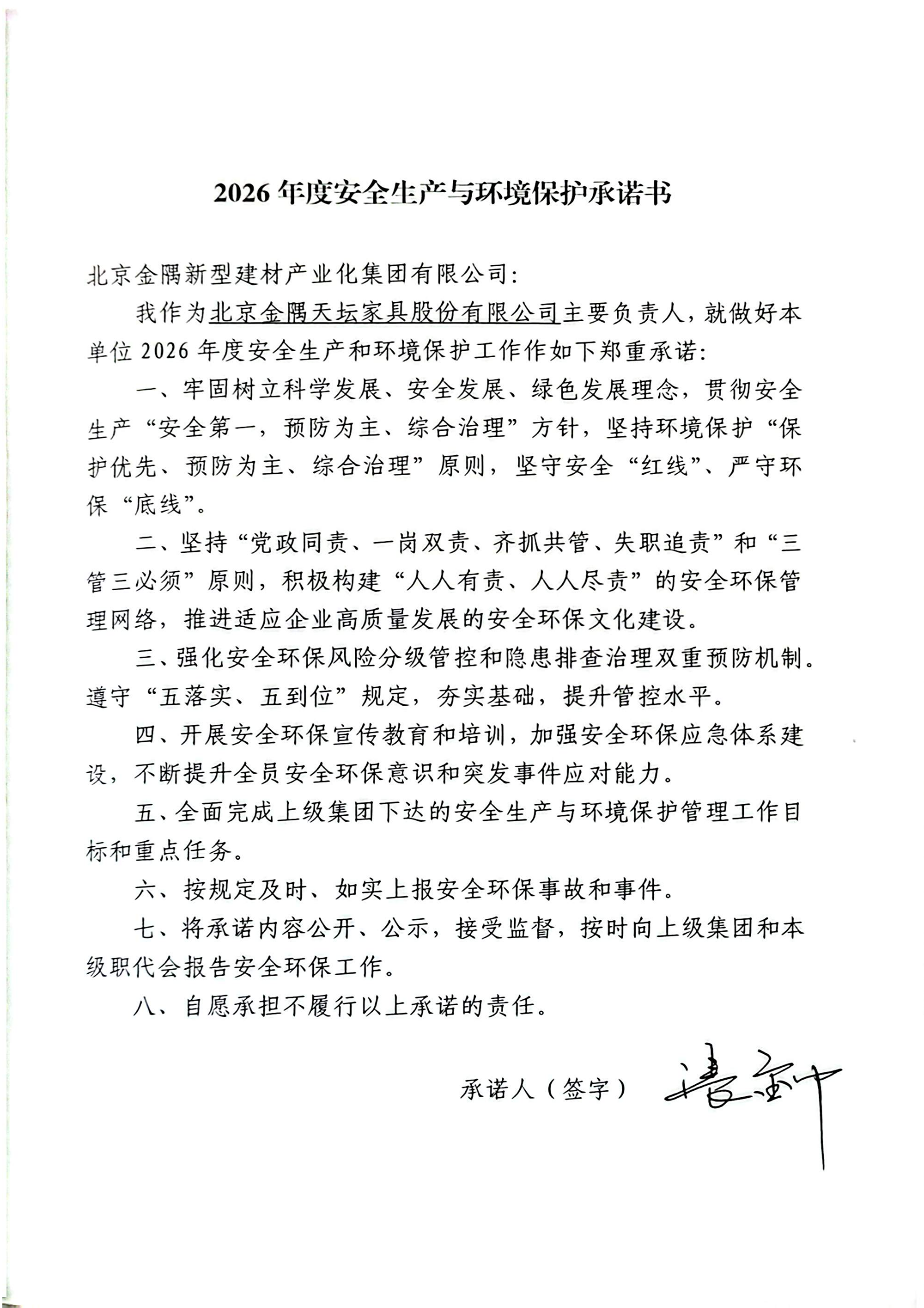 2026年度安全生产与环境保护承诺书